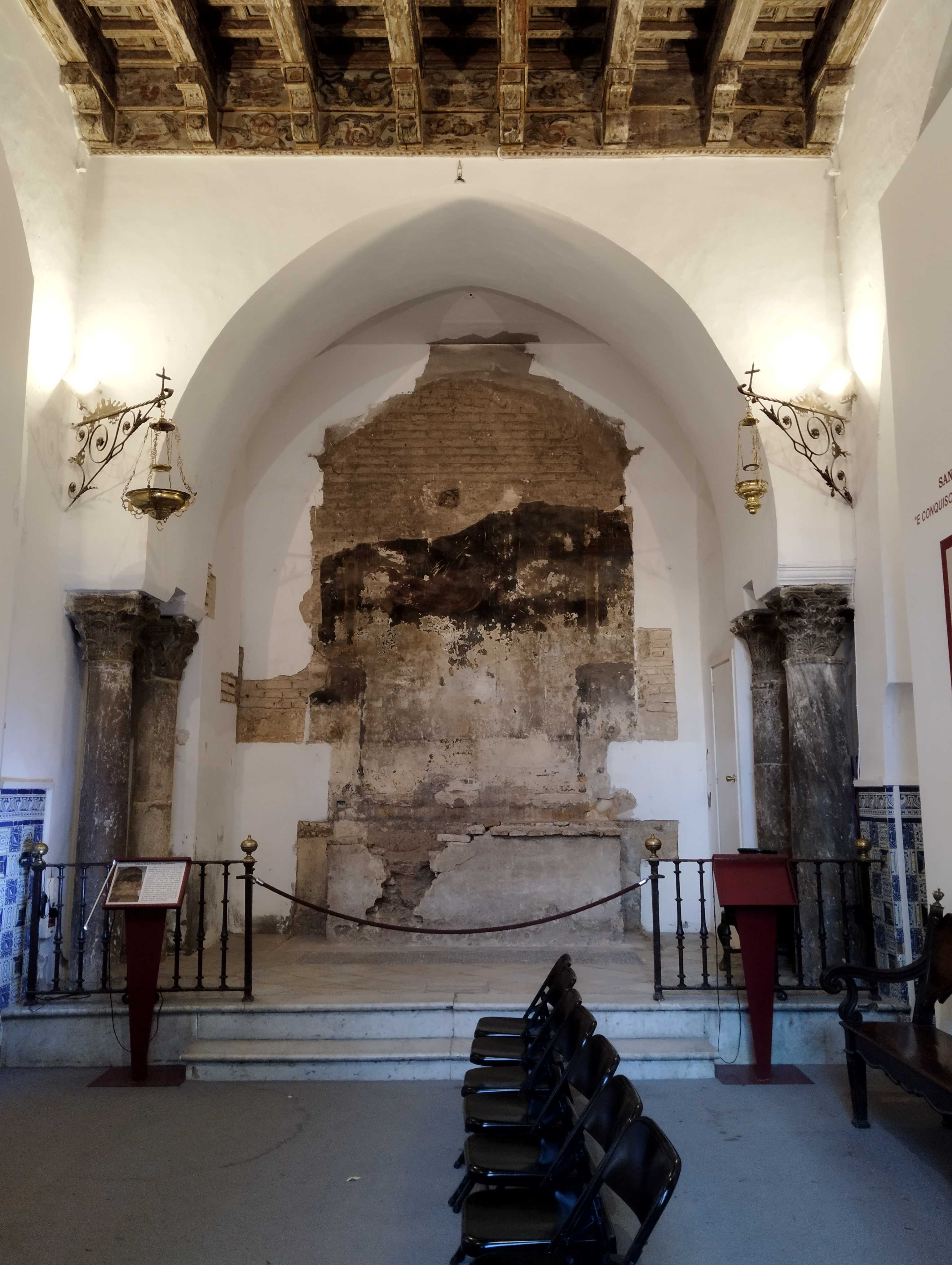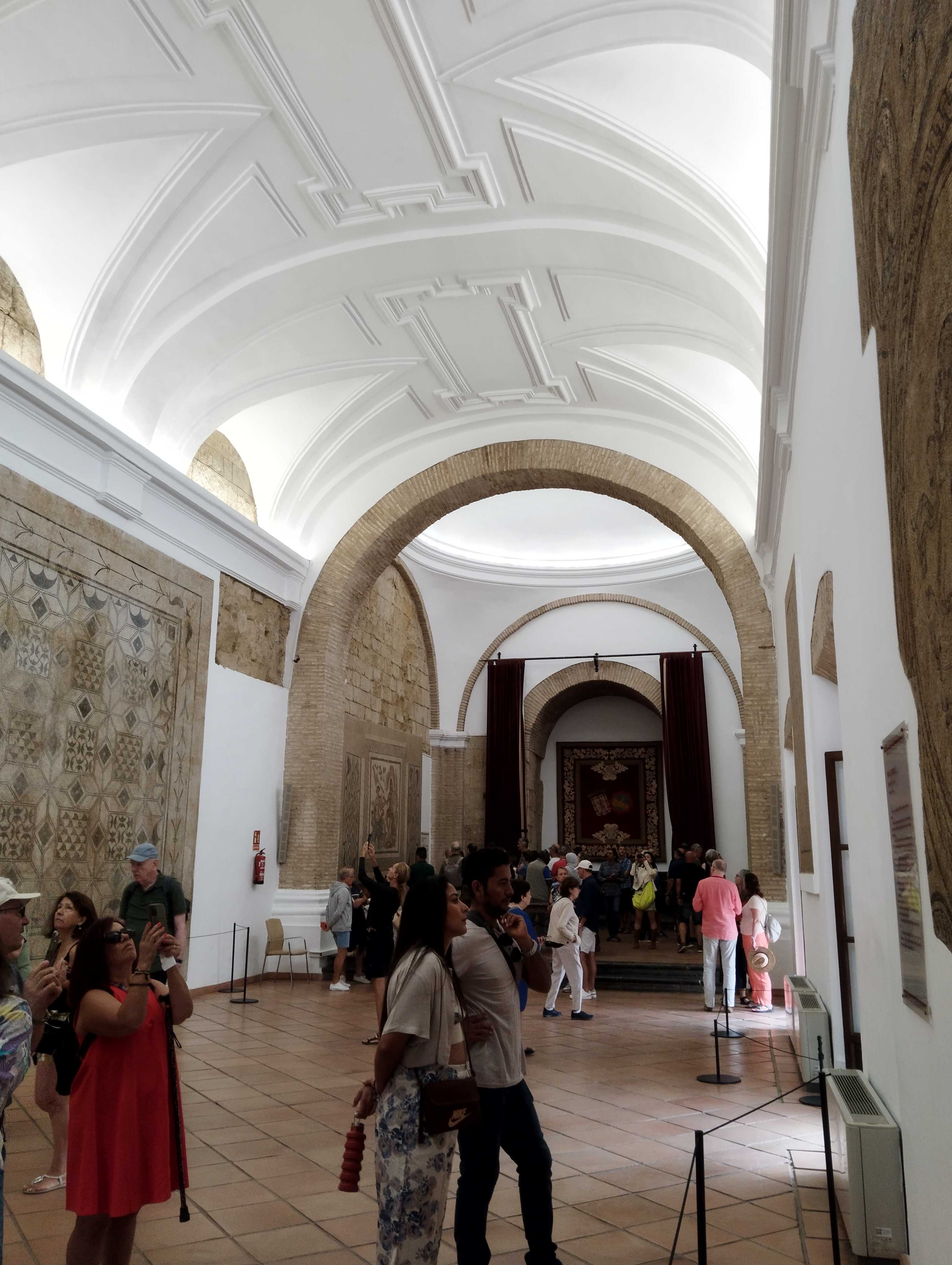 思ったよりかなり早く中に入れたのでじっくり「アルカサル」の見学を開始。「モザイクホール」かなり大きなモザイク画が飾られていました。団体さんが入れ替わり立ち替わりそのモザイク画の前で説明を受けていたので中々見学ができません💦他のところを団体さんより先に進み見学することに予定を変更。修復せずそのままの壁まで展示物に。モザイク画の前に戻ってきたけれどまだまだ人でいっぱい。それでも最初よりかなり近くで見学できて一安心。モザイクホールから先程通った入り口が見えた。ここからは出られないそうで係員から制止されている人もちらほら。