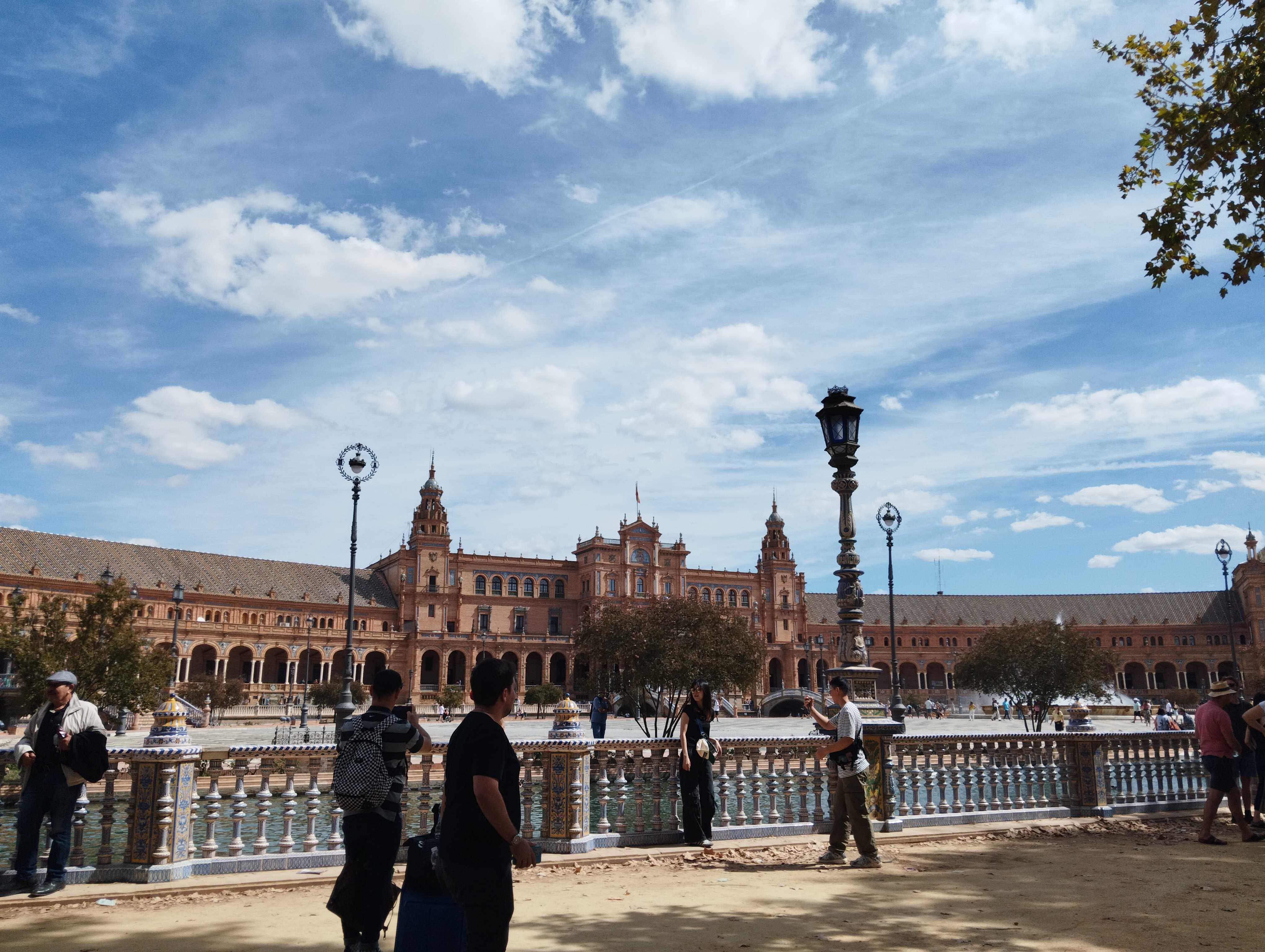 セビージャ大聖堂から歩いて辿り着いたのは「スペイン広場」約100年前の博覧会のために建てられたそうです。とある世界的に有名な映画に出てきた場所らしい。入場料はかかりません。観光馬車のコースになっているらしく、ロータリーのようなところを何台もの馬車が通っていました。あちこちで大道芸の方々が活動中で、フラメンコを踊る人や音楽を奏でる人等々。賑やかです。入場料がかからないのでまるで公園のようにくつろぐ地元の人らしき方々もいらっしゃいました。スペインの各都市(全県らしい)の陶器製ベンチがズラーッ!この時暑くて日差しがキツく、涼しい影になっているベンチはほぼ誰かいました。今まで行ったことのある都市を探したりこれから行く都市のベンチに座ったり、好みのベンチを探したりと楽しめます。時期によりますが、日差しに照らされ続けたベンチはかなり熱いので座る前に軽く触って温度確認をしたほうが良いです!下手するとやけどしますよ!入れないかと思っていたら建物内に入れました。怪しげなお土産売が階段に商品を並べて通りにくい階段もありますのでお気をつけください。2階のテラスから先には行けませんでした。建物2階からの眺め(一部)右の方に映る水路のような所をボートで回れるようです。こちらは1人で楽しめる雰囲気ではない(^_^;)ちなみにボート利用は有料。様々な種類の水鳥さんたちがいて間近で可愛いもふもふが見られて幸せ♡地元の人が鳥さんたちと触れ合っていて(ごはんやりともいう)、それを見ているだけでほっこりした気分になれましたよ!ここが利用された映画、題名は知っていますし音楽も聞いたことはありますが…実は本編を最初から最後まで見たことがなかったり^^;なのでどのシーンでどの用に登場したのかはわかりません。映画本編を見たことがある人ならもっと楽しめるかもしれませんね。