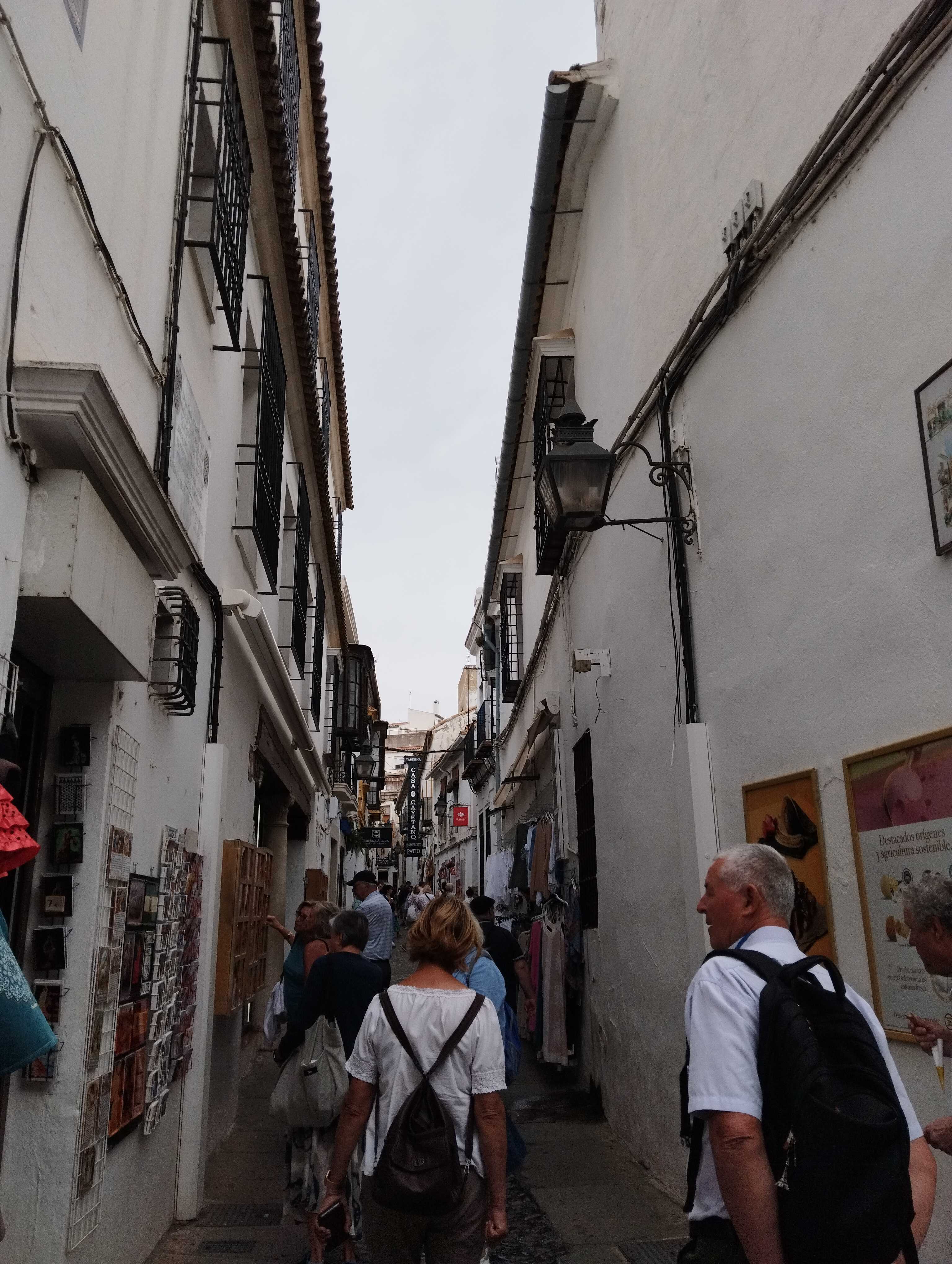 タベルナ(居酒屋)で昼食後、コルドバ歴史地区の散策へ出発です。前日のコルドバ到着時と違い昼間で大変賑やかです。「メスキータ」周辺の歴史地区は私も含めて観光客でいっぱい!建物が白い壁で通路は狭め。歩いていると何となく涼しく感じた。すれ違うのがやっとの狭いところもあるので注意。有名な「花の小径」らしき場所に偶々出た!それっぽいところが何箇所かあったのでここは「花の小径」ではないかもしれない…人がたくさんいて写真撮影をしていたらそこが「花の小径」なのかも。迷路のような歴史地区。ウロウロしていたら好みの建物、玄関がたくさん目に入り写真撮りまくり^^;偶々見かけたお食事とともにフラメンコが楽しめるお店を発見!ショーがあるのが夜遅く20:45から。昼間は食事だけなのか…20:45までは待てないので外観見学のみでお店を後にしました。余り遅くなると、アパートが近いとはいえちと怖い…※観光客が少ないエリアだと街灯が薄暗いものでお土産屋さんの奥に見える辺り、見学できるようですが入りにくくて断念。お土産屋さんでな何か買わなきゃいけない気分になる。
