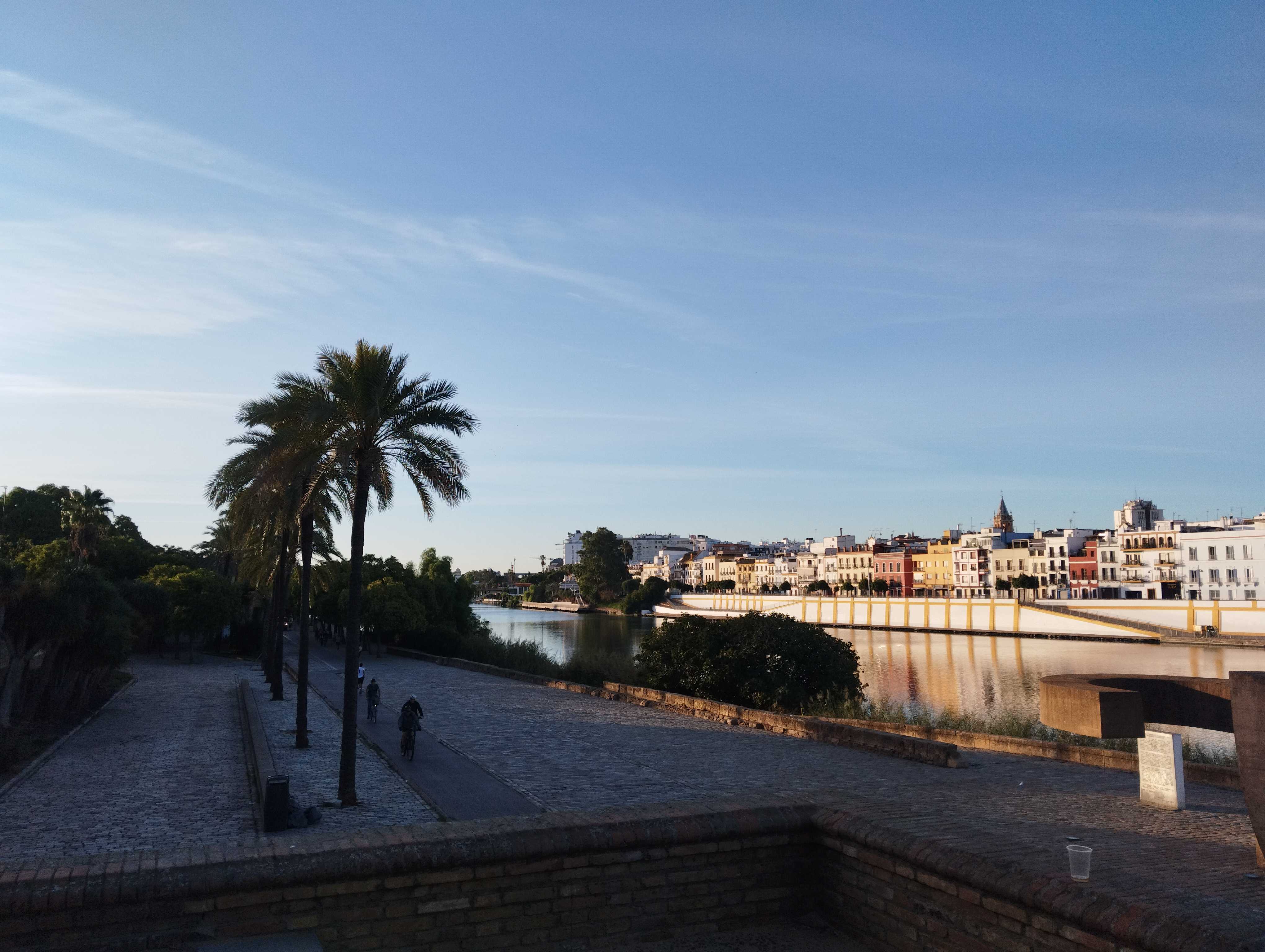 トリアナ市場見学後、「コリア・デル・リオ」へ向かうためにまずバス停へ。「Arjona Puente de Triana」停留所から「Tablada」行き、「41」のバスに乗車。チケットは乗車時に運転手さんから購入。現金払いで1.40€。「Parque De Los Principes」停留所からM-140のバスに乗車。10:35発の便にうまく乗り継げて一安心。こちらのバスも乗車時に運転手さんよりチケット購入。現金払いで1.75€。ゾーンごとに値段が変わるのでご注意を。「コリア・デル・リオ」まではAゾーンでした。こんな感じの風景が延々と続きます。流石にうとうと・・・11:00頃に「コリア・デル・リオ」にある「Tajo-solar-」停留所に到着です。スマホのマップに頼って次の目的地へ歩き出しました。しばらく歩くとどこからか聞き慣れた鳴き声が・・・なんと!!まさかのペットショップ(ごはんや道具類がメインのスタイル)を発見!しかもうちの可愛い可愛いコンゴウインコさんにそっくりなコがいました。カキカキにナデナデもさせてくれて甘噛もしてくれて思わず予定外に長居してしまうところだったわ~^^;売っていたペレットを買って帰りたかったけれど重すぎるので断念…またスペイン・アンダルシア地方に行った際に訪れたいお店です。とても愛想の良いコで人気者のようです。元気にしていると良いな。移動再開。ちらほらお店が開いています。街の中心地に近づいてきました。「コリア・デル・リオ」は約400年前、伊達政宗公の家臣である「支倉常長」氏率いる使節団が訪れた街らしく、その際に現地へそのまま残った方々の子孫が住むと言われているところだそうです。そのため、あちこちに日本語の表示があったりポスターがあったりで不思議な気分に。街の中心へ到着です。お役所もある「セルバンテス通り」街の中ではメイン通りのようですが、土曜日で更にお昼時にはまだまだ早い時間帯だからか人通りはそこまで多くはありませんでした。バルやレストランがあちこちにあります。お土産屋さんはあまり見かけませんでしたが、地元の人向けの生活雑貨のお店や八百屋さん、パン屋さん等はありましたよ。地元の教会がありましたが儀式中らしく入れませんでした。グアダルキビル川に近づくと、周辺の雰囲気が海辺のような感じに。レストランやバーが一気に増えて観光客の姿も目に入るように。ここまで来たら目的地まで後少し!