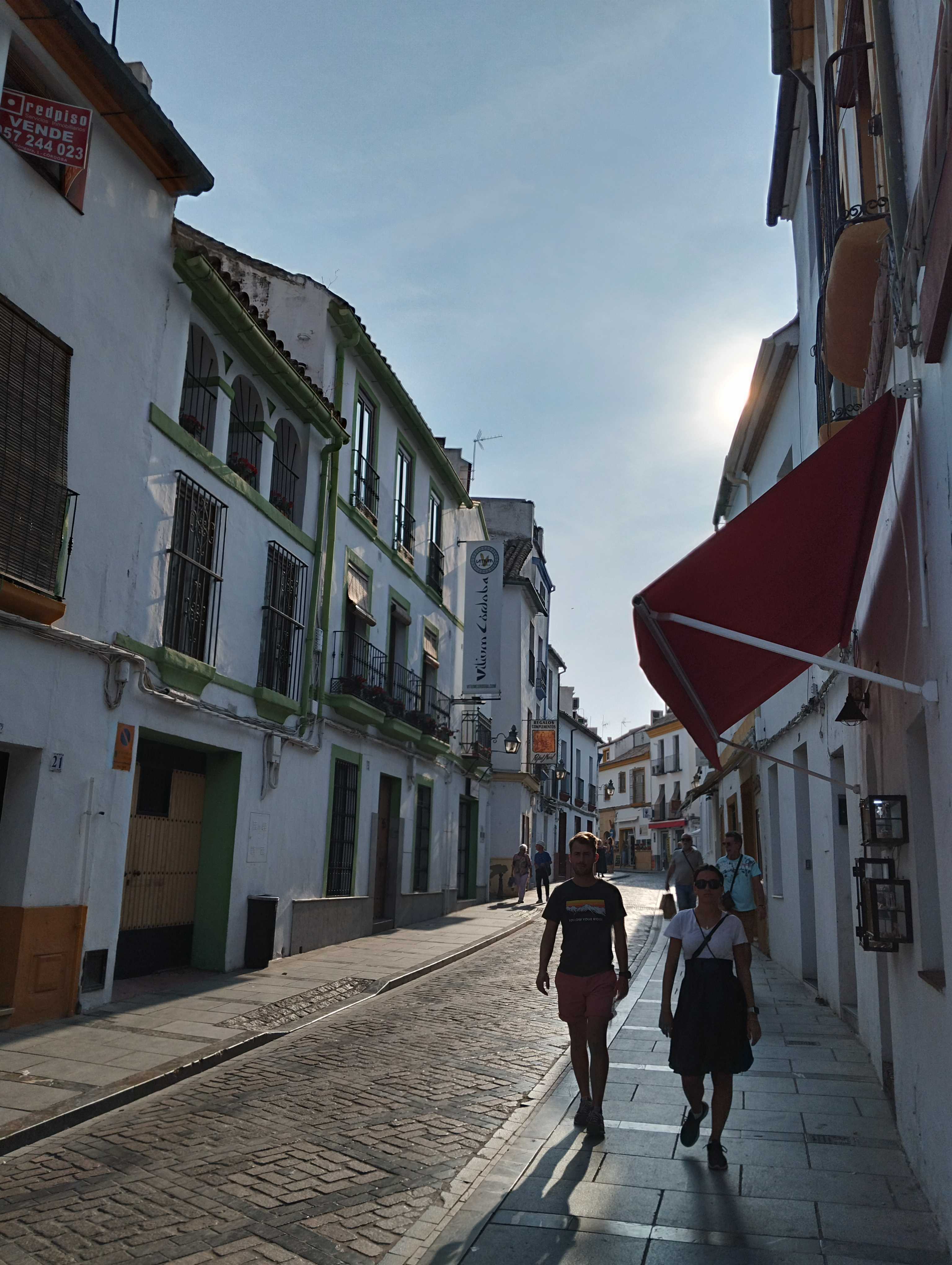 一度コルドバで借りているアパートに戻り一息入れ、16:20頃に再出発して観光開始。歴史地区を中心にウロウロ。ウロウロしていたら歴史地区を抜けて「カルロス・ルビオ通り」(おそらくその)あたりに出た。小さめの宿やホテル、飲み屋さんが点在している。お店かと思ったらおしゃれな一般住宅だったりして見ているだけでも楽しい!住宅街を歩いていたら教会を発見!後で調べてみたが結局どこの教会かわからずじまい。中に入れるかもと思ったが扉が閉ざされていて残念ながら入れず。周辺を見て回る。ちょっとした広場、公園の様になっていて地元の人がくつろいでいたりした。のんびりした空間。ベンチでぼーっとすごす時間が気持ちいい♡しばらくのんびりしてからまた散策開始。歴史地区から離れると白い壁でないお家が一気に増える。ウロウロしていたらやや現在地があやふやに・・・コルドバはまるで迷路のよう。現地の人が心配して声をかけてくれたけれど、目的地があるわけでもなくブラブラしているので大丈夫と言ってお別れした。ら。余程気になるらしく、少し距離をあけてコレデラ広場辺りまでずっとついてきてくれていた。観光地としても有名なところまで出たら大丈夫だと思ったらしく立ち去っていったお兄さん・・・お気遣いありがとう!その「コレデラ広場」。市場があるので宿泊候補地だった場所。この辺りのアパートを借りたら市場で買ったもので料理をするのも楽しそうな雰囲気。ただ、メスキータやアルカサルまで徒歩で移動となると結構距離があるので注意は必要かも。タクシーで目的地告げるときにわかりやすくて良い場所ではある。夕方でお昼には遅すぎるし、夜には早すぎる時間帯でカフェやレストランもお休み中らしく人が殆どいない。「プラサ・デ・ラス・カニャ市場」開いていたので入ってみたが殆どのお店がその日の営業を終了していた。開いているかと思ったお店も閉店作業中だった。基本14:30頃までの営業らしい。市場内に入って建物内を見学できただけでもありがたい。朝は8:00から営業とのこと。中々大きな市場のようで営業中入れたら、更にお買い物できたら楽しそう…「トリル通り」を通って再び街歩き開始。ところどころ中庭が見学できる場所もあってなんて楽しい街歩き!建物の解体現場に出くわし見ると見事なまでのレンガ造り。ここは解体作業が長期間止まっているらしく、鳩さんのアパート化していて賑やかではあった。
