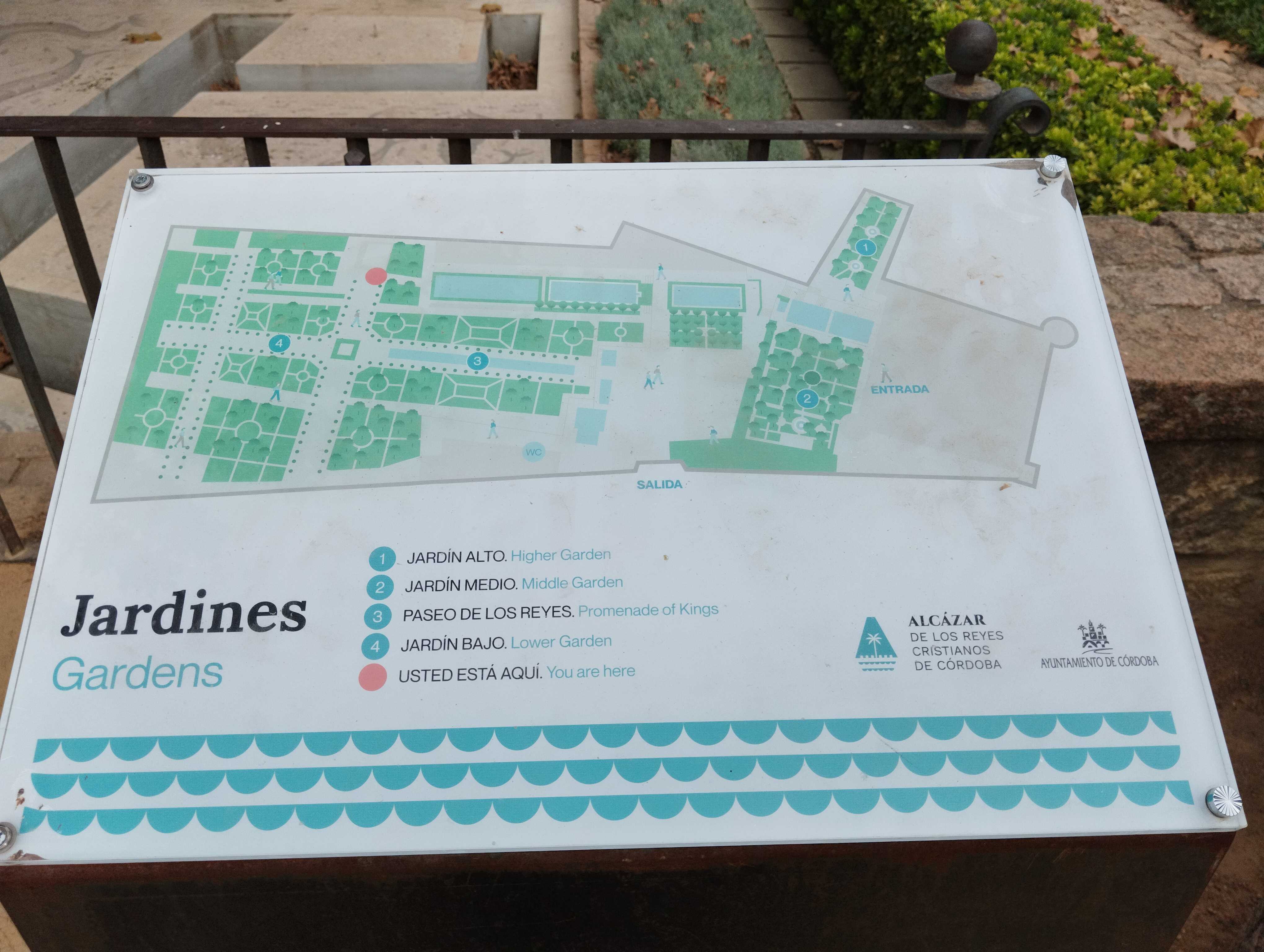 アルカサルの建物から出られる階段の先に人がいっぱいいて中々進まなかったのは、どうやらその先にある庭園に関する話を団体さんが受けていたため流れが止まっていたようだ。「庭園」全体の大まかな案内図があった。「アルカサル」の中でも人気エリアなのか、あちこちに観光客の姿が。庭園内にある池に鯉や亀さん等々生き物がたくさんいて、観光客が覗き込むと「おねだり」していた。花の満開の時期からはずれていたが、時期があうと庭園全体が一層華やかになるらしい。いつかその花の時期に来てみたいものだなーと思いつつ庭園をブラブラ。ちらりとでも池を覗き込めばごはんの「おねだり」圧が凄まじい・・・庭園の一部でイベントの準備が行われており、車が出入りして椅子や机が運び込まれてややもったいない雰囲気になっていた。9月の後半に訪れる際にはイベントが行われるかもしれないので情報チェックをされることをおすすめします。イベントの用意をしているあたりを背にして振り返ると庭園の中心部がキレイに見えました!所々に満開のお花の姿が。ただ、大半が写真の右上辺りに映るお花さんのようになっていた。観光客用のおトイレは敷地内の端の方にありますのでご利用の際は早めのご移動を!庭園から「アルカサル」の建物の方に戻る際、先程とは違うルートで移動してみました。何故かこの柱は井戸のようなところに…近くの人が親切に説明してくれたけど・・・・・・うん・・・単語を拾うので精一杯でした(;・∀・)市場でも開けそうな雰囲気。建物内を見学していたときに見えた中庭にたどり着きました。噴水は止まっていましたが水は溜まっていた。