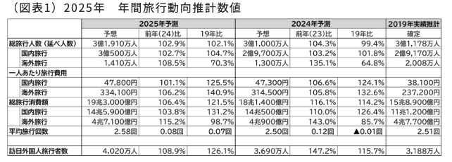 インバウンドニュース旅行統計2025年の旅行動向訪日客数は2024年を超える4020万人と予測ーJTB2025.01.15🎴やまとごころ編集部◆JTB1981年から旅行動向を継続的に調査して居る2025年の見通しを1月9日に発表した2025年の訪日外国人客数は過去最高を記録した2024年から 更に伸びる見込みで前年比△108.9%の4020万人と推計して居る🎉◆2024年1月~11月訪日客数の累計数は約3338万人で、2023年同期比で149.5%、2019年同期比で113.7%となっている。2025年の伸び率はコロナ禍収束からの急な需要回復が一巡し、緩やかになる見通しだ◆円安ソレでも訪日旅行への追い風が🈶り、2019年比で126.1%と予測して居る。尚、2024年の訪日客数は3690万人超えを見込んで居り、この勢いは衰えず、2025年も訪日客数記録更新の年と成りさうだ◆国・地域別で見ると🥇1位から順に韓国、中国、台湾、アメリカ、香港、タイ、オーストラリアだった。その内、韓国、台湾、アメリカ、香港、オーストラリアの年 1 月~11月までの累計数は2019年を上回って居る◆2025年⚡️近隣国・地域から順番に増加するコトが見込まれて居る。中国は回復が遅れて居るが、ビザ緩和措置etc.が講じられれば回復が早いと見られる◆増加する訪日客に期待と不安の声尚、2024年11月29〜30日の期間、「2025年1月1日〜12月31日に実施する旅行」について、全国の男女15〜79歳、3095人対してインターネット上で調査を行った◆調査対象者訪日外国人観光客に対する気持ちを聞いたトコロ「日本経済の活性化に繋がる(34.2%)」を筆頭に「地方経済の活性化に繋がる(23.2%)」「観光地に賑わいが出る(17.8%)」など肯定的な意見が見受けられた◆一方、懸念する側としては観光地でのマナー悪化」(43.4%)、「観光資源や施設、自然へのダメージ」(31.9%)、「住人の生活への影響」(31.3%)などが挙がっている。男女とも50代以上に懸念の声が高く、若い世代ほど前向きに捉える傾向があるようだ◆観光地のオーバーツーリズム地元住民の生活環境の悪化、国内旅行者の旅行体験の質の低下などの問題を引き起こす可能性がある。これらの影響を抑制し、訪日客と国内観光客や地域住民双方にとってより良い共存関係を築けるよう、持続可能な観光施策に注目が集まっている◆2025年の主なEVENT「2025年日本国際博覧会」(大阪府)や「世界陸上競技選手権大会」(東京都)、「瀬戸内国際芸術祭」(香川県、岡山県)、沖縄の大型テーマパーク「ジャングリア」開業などが予定されている。国際的な大規模イベントもあり、訪日客増加に貢献すると見られる◆訪日客数1、2位の韓国、中国の2025年動向は?⚫︎小都市旅行とグルメで進化する2025年の韓国市場⚫︎日本人と変わらないスタイルへ⚫︎2025年中国FIT市場の潮流⚫︎国内感覚で日本の地方を旅する旅行者の心を掴む為には⁉️⚫︎日中往来の更なる活発化が予測される2025年の中国市場⚫︎地方分散や受け入れキャパ不足への対応がカギに📰黒星★ULTIMATE☆新聞【🐍2025🎍迎春🌸】
