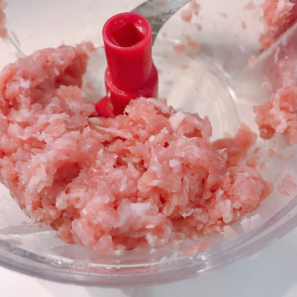 豚肉切り落としを其の場でミキサーに掛けて