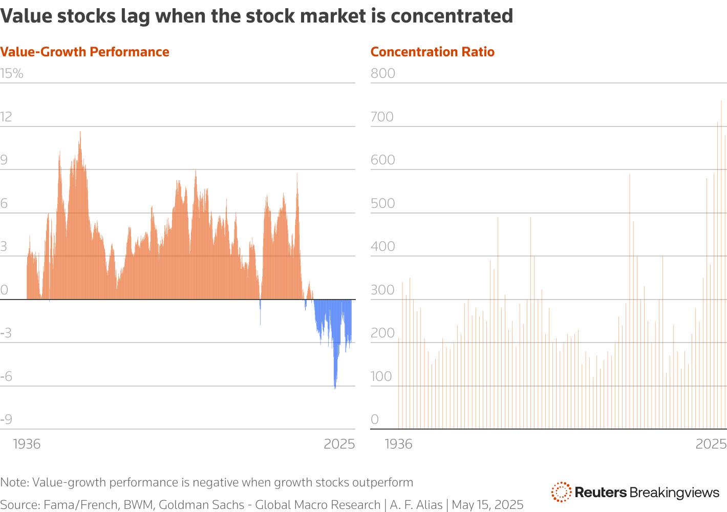 本社を置くBWMのポートフォリオマネジャー、ゲオルク・フォンビス氏は、過去に投資市場が極端に集中した時期にはバリュー株のパフォーマンスが低下したと指摘している
