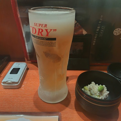 本日の早朝ウオーキングは名古屋駅方面へ。朝からお人がうじゃうじゃですね。モーニング小休止を駅構内の「驛釜きしめん」さんでいただきましょう。水分補給の瓶ビールから。アサヒのスーパードライです。美味しいですね。冷やし山かけきしめんをお願いしました。おねぎや海苔もたっぷりでうれしいですね。ビールがすすむくんです。つるつるのきしめんも美味しくいただきました。さて、ウオーキングの続きをしましょう。どうもごちそうさまでした。「驛釜きしめん 中央通り(えきかまきしめん)」愛知県名古屋市中村区名駅1-1-4 名古屋駅構内 中央通り07:00 - 22:00驛釜きしめん 中央通り (麺類 / 名古屋駅、名鉄名古屋駅、近鉄名古屋駅) 昼総合点★★★☆☆ 3.0