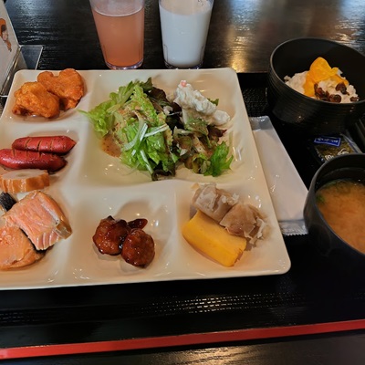 本日のモーニングは米子駅前のホテル「ホテル・アルファ-ワン」さんでいただきます。バイキング形式の朝食です。お皿の大きな部分はお野菜です。レタスメインのサラダ、ポテトサラダを添えましょう。シュウマイ、玉子焼き、肉団子、焼き魚、ちくわ、ウインナー、唐揚げを盛りつけます。ご飯とお味噌汁にお漬物、海苔は5枚でした。美味しくいただきました。大浴場が嬉しいですね。お世話になりました。「ホテル・アルファ-ワン 米子(α-1)」鳥取県米子市明治町195ホテル・アルファ-ワン 米子 (ホテル / 米子駅、博労町駅) 昼総合点★★★☆☆ 3.0