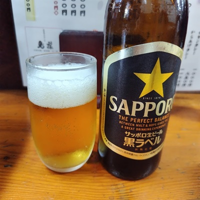 本日の早朝ウオーキングは東銀座スタートで築地方面へ。水曜日ですので行列は控えめですね。水分補給の小休止を、築地「鳥藤分店」さんでいただきましょう。超深夜ということで瓶ビールをいただきます。サッポロの黒ラベルです。美味しいですね。超深夜ビールのお供に選んだのはモツ煮です。もつ焼き250円ショップが懐かしいです。ビールは昔はハートランドでしたね。すべてが懐かしいです。瓶ビールから9分ほどでマイターン。水炊きが到着です。ベジタブルファーストでキャベツからいただきましょう。まだ、しゃきっと感を残しており美味しいです。とにかくスープがたまらないですね。親子丼では少ししか付かないスープがたっぷり。幸せな時間です。そして大好きな土佐の高知の北山村のポン酢です。たっぷりといただき、味変を楽しみましょう。超深夜からの水炊きタイム。ビールと共に堪能しました。どうもごちそうさまでした。「鳥めし 鳥藤分店(とりめし とりとうぶんてん)」東京都中央区築地4-8-6月・火・水・木・金・土07:30 - 14:00日・祝日定休日■ 定休日休市日鳥めし 鳥藤分店 (鳥料理 / 築地駅、築地市場駅、東銀座駅) 昼総合点★★★★☆ 4.0