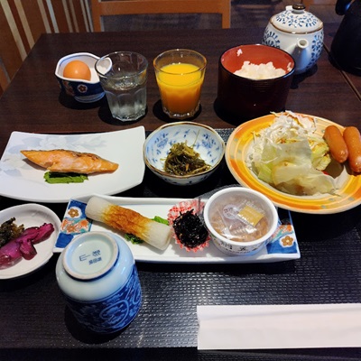 本日のモーニングは山口県湯田温泉、ホテル「うえの」さんでいただきます。ホテル内の居酒屋「一力」さんが朝食会場です。バイキングではなく、和定食です。サラダ、ウインナーソーセージ、焼き魚、煮物、竹輪。生玉子、昆布煮、納豆、お漬物と御飯のお供も揃っております。モーニング竹輪が嬉しいですね。美味しくいただきました。温泉付きのビジネスホテルです。着いてする、夜、朝と温泉を満喫しました。これから会議をこなしながらの四国への移動です。どうもお世話になりました。「一力 ホテル店(いちりき)」山口県山口市湯田温泉1-1-38一力 ホテル店 (焼き鳥 / 湯田温泉駅) 昼総合点★★★☆☆ 3.0