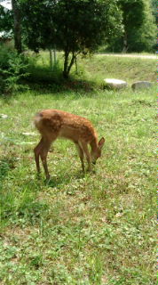 ある日の一日です。山の中の公園で、可愛い小鹿に出会ってしまいました。ピクニックでは、 野生のバンビちゃんが突然出てきました。皆で作ったサンドイッチ、「おいしかったねー」 「いい風 木陰はとってもすがすがしいよ~」こんなに近くによって来てくれましたよ。お母さん!どこいったの??