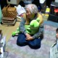 お久しぶりでございます。(誰に挨拶してる??)こんな日記を書き始めたら、今、足がけいれんしまっくってます。なぜ??なぜ??最初、ふくらはぎがけいれんして、一生懸命引っ張ってやっと直りましたが、時間にして20分近く回復にかかって、歳を感じているところ・・・またまた、今度は太ももに来ました。やれやれ・・わたしにどうしろと・・・コレが背筋、腹筋にきたひにゃ・・・悲しいかな、回復の方法を知りません。ただ痛みに耐え、治るまで恐怖に怯えるだけ・・・あ~~ん~~!!私が誰かに悪い事したぁっー??ちがいます・・・わかってます・・・ 歳です・・と!し!我が家を何者かが出没するのも、我が家が・と!し!・だからです。ぎんはいつも何かを見てる 何なんだろう??そんな時ぎんの目は、映画ペットセメタリーの中の墓から出てきた犬みたいな無機質な目になってしまうのでした。我が家のおばあちゃんぎんが大好きで、こんな風にいつももてあそんでます。ちなみに、ぎんとおばあちゃんが並んで座ると大きさは変わりません。