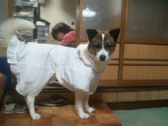 だらだらが大好きです。憩いのひととき我が家の“ぎん”です。ぎんには生い立ちがあります。チョー美男子雑種犬の“のろ”が胃がんでなくなって、その半年後に長男に拾われてきました。手のひらに乗る小さな子犬、誰が捨てるのでしょう。まだやっとよちよち歩けるぐらい、お母さんのお乳なしでは生きていけません。実は、1代目のろも捨て犬でした。この子はまだ目も開いてなくて、へその緒がついていて立ても出来ない子犬。ビニール袋に入れられて溝に捨ててありました。「ひどいことをする。」生まれるって事は、犬を飼ってるって事ですよね。これも長男がひらって来たのですが、2時間おきの授乳と排泄の促しと母犬に変わっての育犬??でしたが、獣医さんに相談しながらなんとか生きてくれて、6歳まで生きました。その間、全治3週間以上の治療がいるほど人をかむこと5回。その中には、ひらって来た長男もいます。(救急車で運ばれました)彼の信頼を得ることは、ガンで死ぬまで出来ませんでしたよ。今は家の裏の竹やぶで、80歳以上のお年寄り8人が書いてくれたもみじの大きな布に包まれ眠っています。死ぬその日まで、スモモの木下で、我が家をずっと見守り続けていてくれました。今思えばガンの苦しみで狂暴になっていたのかもしれませんね。病気がわかってからは毎日点滴におとなしく通ってくれましたもの。「ぎん」はそんな「のろ」の後釜なんですが、驚くほどおとなしくて、みんなで「愛すべき超チョー駄犬」と読んでます。彼は人の見えないものが見えます。いつも何かに怯えて震えます。いつも特定の場所を伺いながら何かから逃げます。ハーっ~・・・家の中で何が見えるんでしょうか・・・コワイ憩いのひと時。この台所です。もうすぐ何かが見えるかも?81歳のおばあちゃんと散歩するときは、後ろを振り向き、振り向き気遣いながらおばあちゃんを散歩に連れて行くそうです。(近所の人の話です。)「ぎんがおばあちゃん散歩につれて出てたよ。」ですって学校帰りの子供達には変な服着せられておばあちゃんと歩くぎんはかなり名物コンビだったらしいです。(今、おばあちゃんは心臓の発作が起こるので散歩禁止です。)