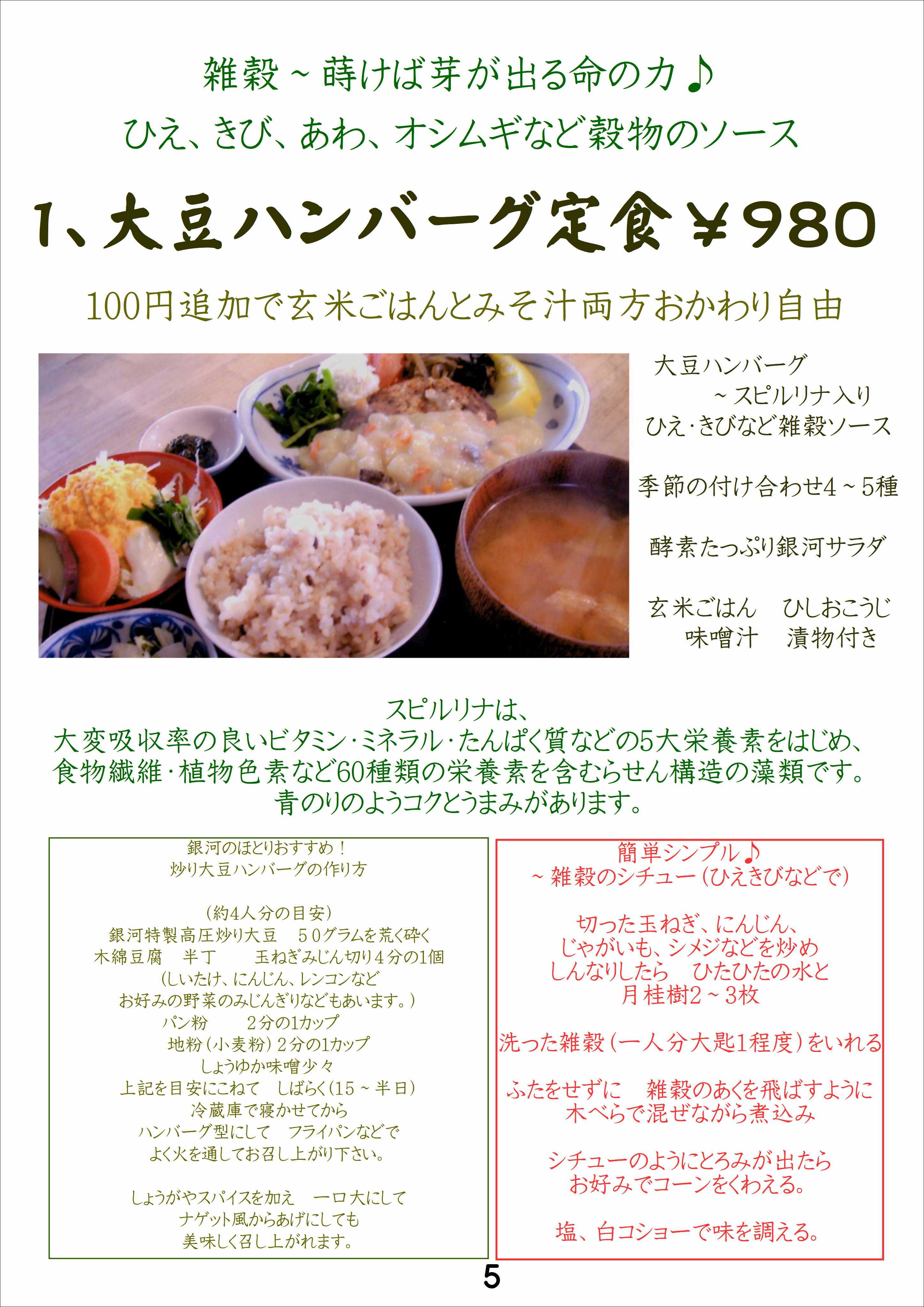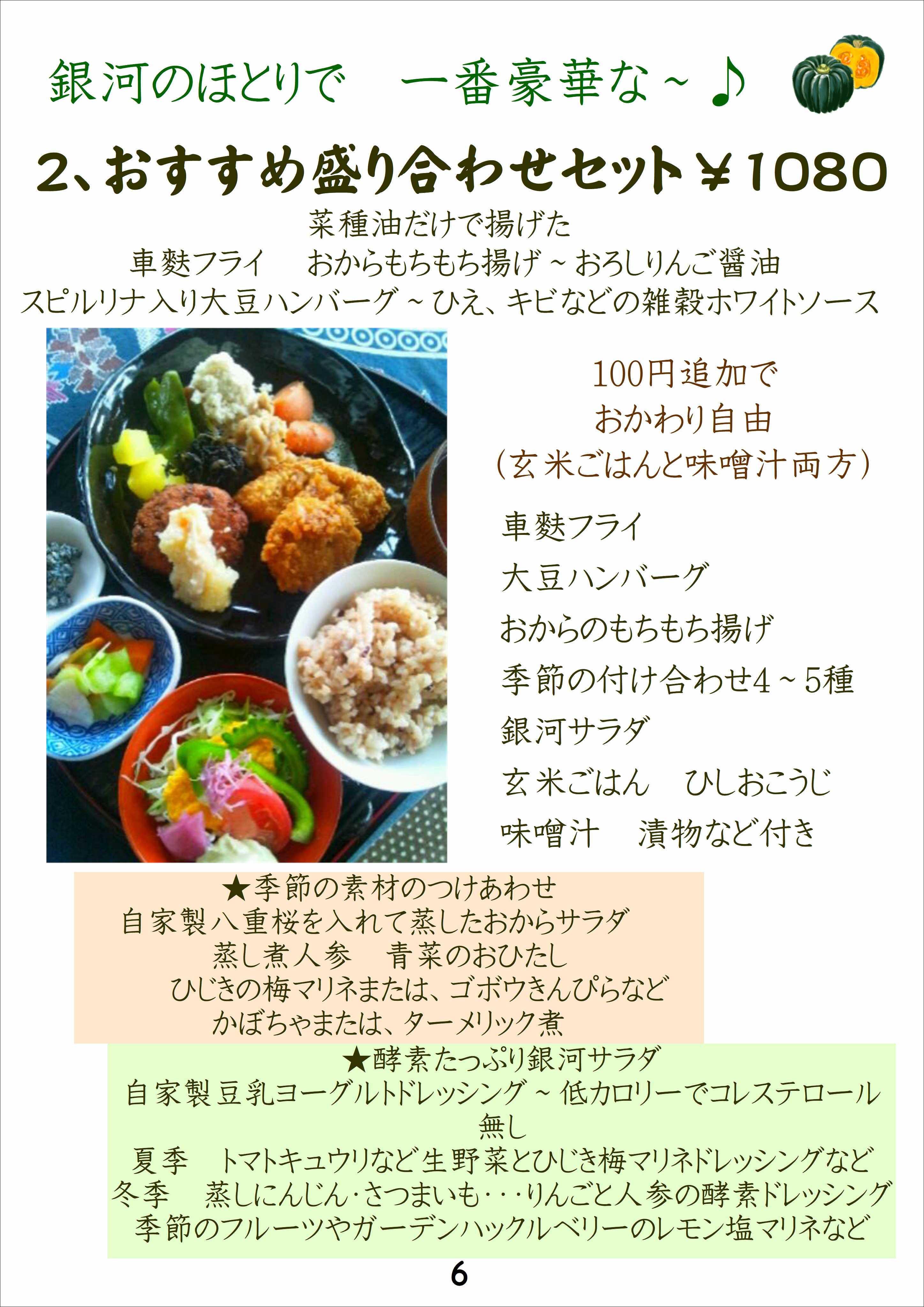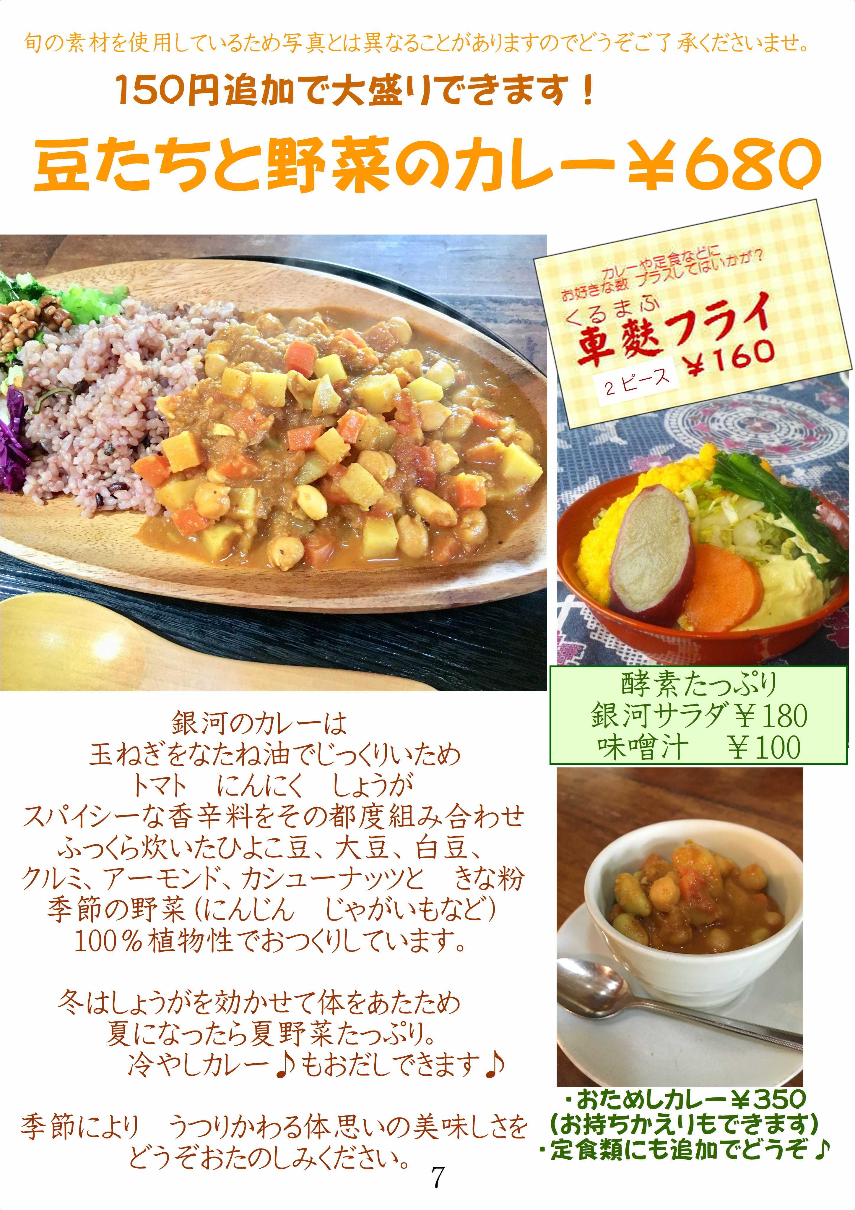 銀河のメニューのご案内