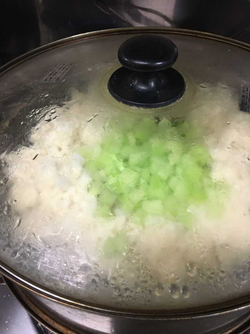 冬場は大根の小さめのさいの目切りをのせて蒸して