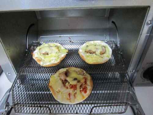 こんばんは~昨日の日曜日は、久しぶりに身も心もの~~んびりと過ごしました梅雨だと言うのにお天気だし、6月だと言うのに風は涼やかだし・・・ 良かった~そんな日の朝食は解りますか~餃子の皮でミニミニのピザですトッピングは残り物のキャベツの千切りに、チキンソテーマヨネーズやケチャップをかけて、たっぷりのチーズをのせてオーブントースターへこれ、我が家では人気なんですよ孫達も大好きですおやつの時は蜂蜜や練乳をかけて焼いたりしますこのピザに人参ジュースとヨーグルトで済ませましたそうそう、雲が綺麗でしたね~ベランダにはミッキーが出現可愛いでしょう