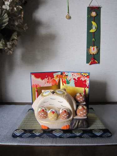 こんにちは~早いですね~ 6月も残り5日に為りました一年の半分が過ぎて行きます・・・ 早すぎ!時間の流れに気持ちが付いて行けませんね先日、行きつけの雑貨屋さんをのぞくと、何とも可愛い置物が並んでいます縮緬でできた猫達と焼き物で出来たフクロウ達です迷わずフクロウを買って帰りました後ろの飾りも一緒に付いてきましたアップで可愛いでしょう 親子かな!お母さんフクロウは貯金箱になっています下の畳みも本物のイグサで出来ています大きさは両手に乗るほどですよ我が家に福を呼び込んでくれると嬉しいな~日曜日に孫達と一緒に園芸店へ行き、寄せ植えのお花を買って来ました孫と相方は途中いつもの川で鯉に餌をやりながら歩きで・・・私は車で後から追いかけて・・・早速植えて玄関を飾ります早朝ウォーキング、まだ続いていますよ