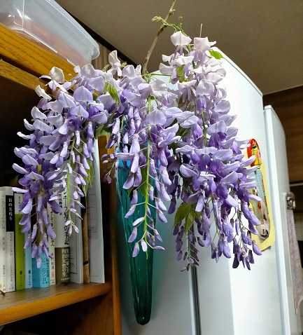 昨日は又揺れました小さな揺れでしたが、何だか怖いです・・先ごろの夏の暑さは何処へやら雨は降るし寒い、どうなってるの天気予報でも「寒の戻りは有りません」何て言ってたのにね信じて冬物を片付けたのに、がっかりです先日友人宅から持ち帰った藤の花冷蔵庫にマグネットのフックを取り付けて花瓶を取り付け挿してみました今日もまだ綺麗ですよ玄関も少しだけ模様替えお天気にな~~れ 暖かくな~~れチャロも寒いのかお爺の膝の下で寛いでいますコロナはまたまた変異株が出てるしどこかで日々揺れているしロシアのウクライナ侵攻は激しくなっているし何時になったら平和な世界になるんでしょうね