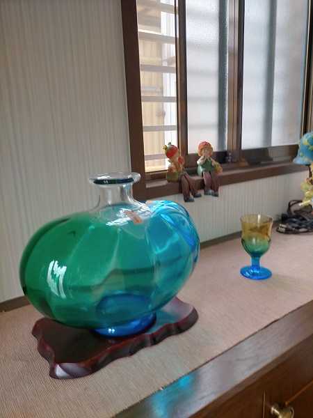 昨日から今日に掛けて、テレビのニュースも新聞も安倍元総理の事だけ・・・本当に衝撃的な出来事でした世界一安全な日本でこんな事が起きていいのだろうか誰もが思った事ですよねそれでも日常は淡々と過ぎて行きます又暑さが戻って来ましたね~湿度が高く、不快指数の高い一日になりました玄関を替えてみましたが・・・津軽ビードロの花瓶とグラスです色が涼しげですよね少しは涼しく感じられるかな一年生の孫に夏のサンダルをこれも又涼しげなブルーです喜んでくれるかしらラインで写真を送っておきました私がパソコンの前に座ると、チャロが寄って来ます時々は膝にのせて一緒に画面を見たり・・・解ってるのかしら
