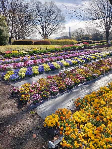 目の前にはパンジーが一面に