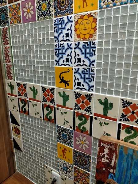 壁のタイル、サボテンにトカゲ・・・