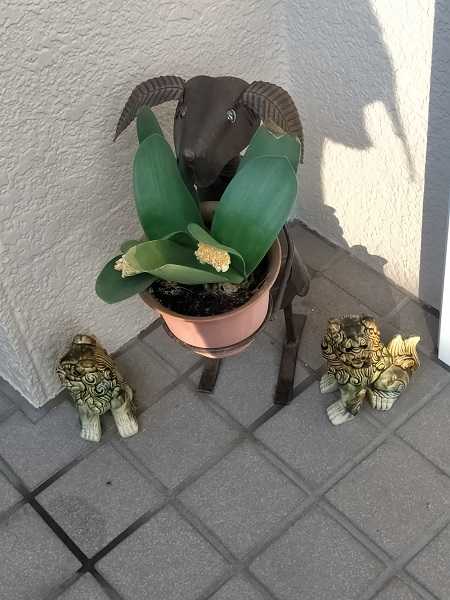 沖縄から送られてきたオブジェに、沖縄土産のシーサー