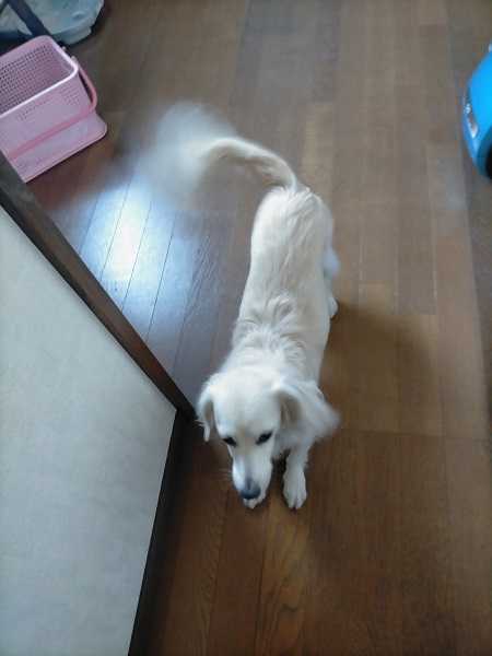 お散歩行くよ、と言うと尻尾をブンブン回して