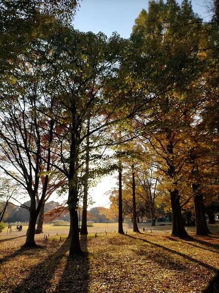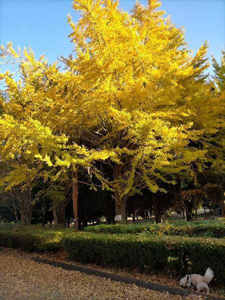 広い公園は欅やイチョウの木が紅葉し始めていました