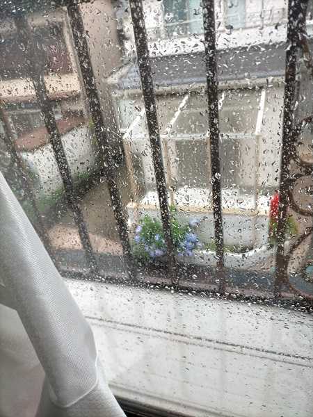 容赦なく雨粒が打ち付けています