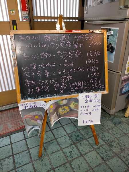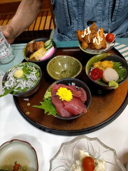 お爺は5種のミニ丼を、私はお刺身定食を