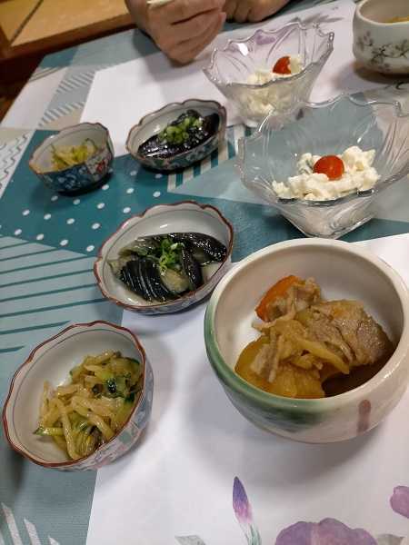 肉じゃが・キュウリともやしのナムル・茄子の煮びたし