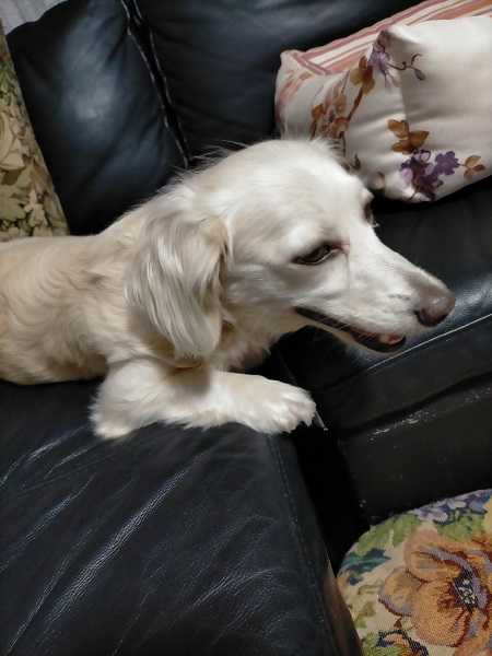 夜の散歩から帰って来たチャロ