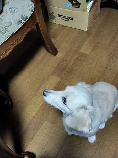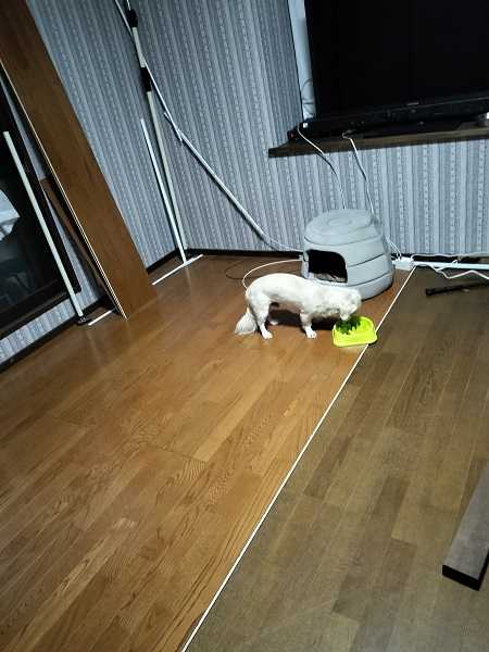 寛ぐ場所が無くなって、下のダイニングでウロウロ