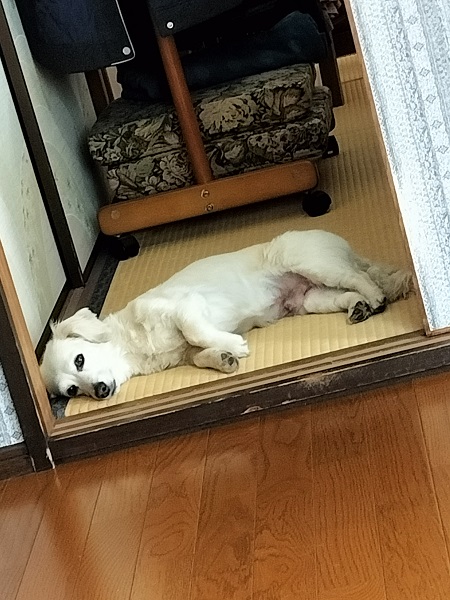 チャロは散歩から帰るとお疲れモードで