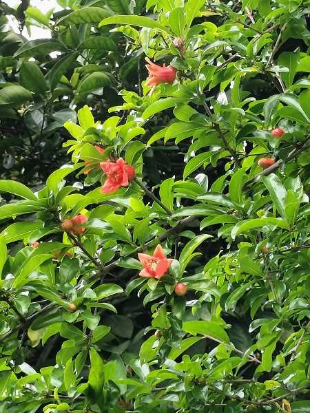 ついこの間枯れた実を付けていたザクロに花が