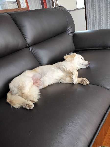 ソファーの上でお昼寝中・・・