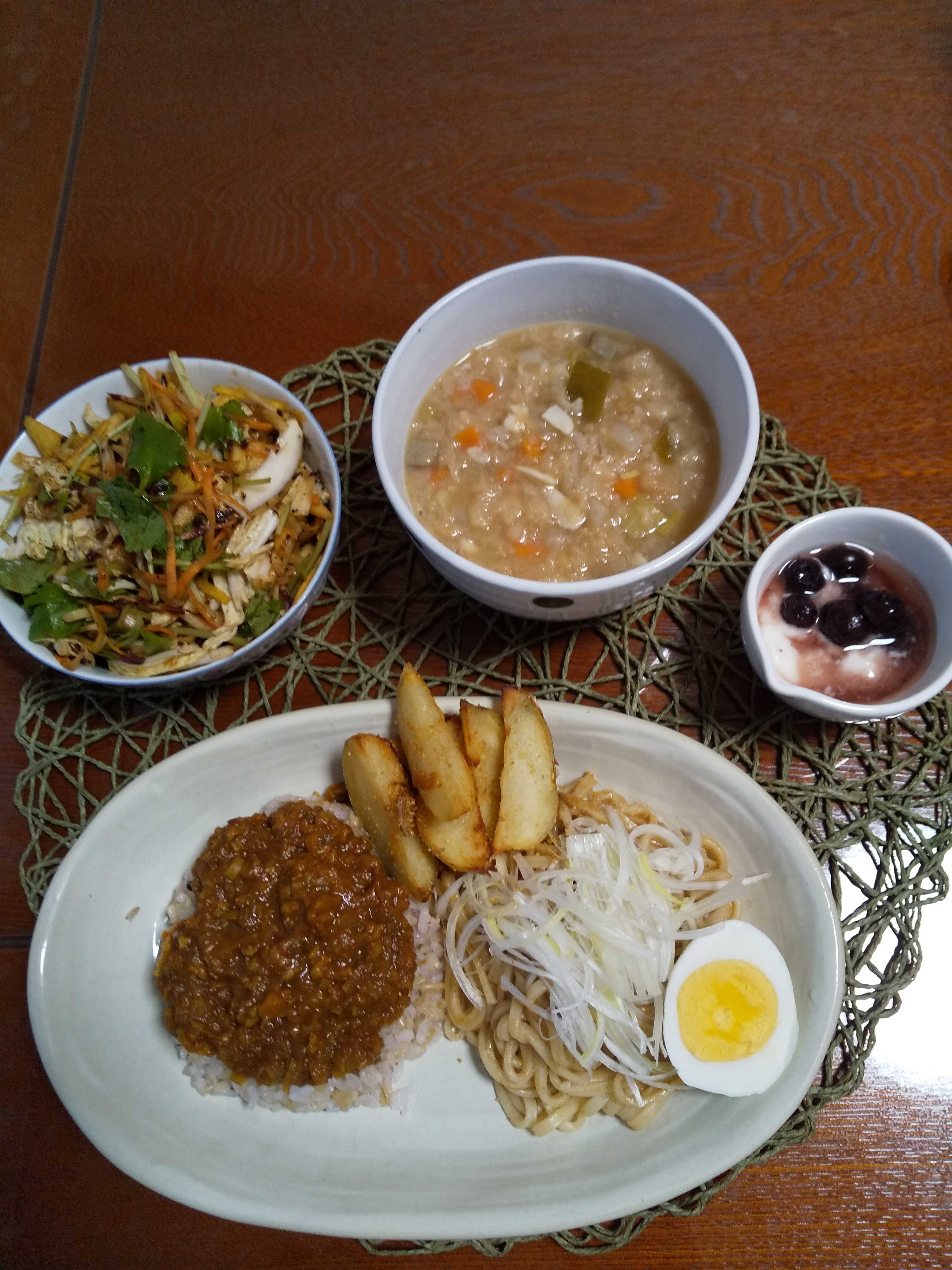 今日の夕飯です。 冷凍していたドライカレーを頂きました。 魚介豚骨まぜ麵を…