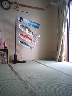 こちらに越してきて数年。畳がね、ボロボロだったんです。子供達がごろごろして遊ぶと全身ささくれがくっ付いて。靴下にくっ付くと足にささるですよ。痛いですよ。んもー耐えられない!と、い草の上敷きを買いまして、今日届いたので早速敷いてみましたー!鯉のぼりはトモが「僕もお雛様が欲しい」と泣いたので去年買いました。兜は嫌だと言うので鯉のぼり。でも外に出してると雨の日とか出し入れが大変なので室内用です。ささくれがもう服に付かな~いっ嬉しい~っそして新しいい草の香り・・・実はちょっと苦手 (´・ω・`) そして午後はPTAの最初の集まりでした。5つの委員に分けられ、それぞれ委員長、副委員長が決まります。委員も凄く大変なところ、そうでもないところがあるので人気の委員はジャンケンしたりくじ引きしたり・・・委員決めでは、めでたくジャンケンに勝ち、第一希望になる事が出来ました!これで浮かれてた私。委員長決めのくじ引きで・・・みごと委員長に当選してしまいましたーっ ミ(ノ;_ _)ノ =3ありえないありえないありえない嘘だ嘘だうそだこんなショックだったの人生で初めてかも(笑)まあでも、もう向いてるとか向いてないとか言ってらんないですよ。覚悟は決めたですよ。やるしかないですよ。1年間頑張りますよ。終わったら、ご褒美買いますよ。