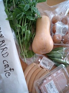 月に1回、地元の野菜を販売するという横浜ベジタブルマーケットへ行ってきました。公園内の古民家でちんまりと開催されるのですが、見たことのない野菜が沢山!「これは辛いの?どうやって食べるの? え、この卵は有精卵?じゃあ温めたらヒヨコが孵るね(笑)」と、話をしながら買うのは楽しいです。もちろん採れたてピチピチ、値段も安ーい。最近スーパーに行っても野菜を買わないで帰ってくることが多いのです。どれもこれも美味しくなさそうで買う気がしない・・・少し割高ですが、最近はパルシステムやおいしっくすで買っています。で、そのあとたまプラーザへ行き、「シュタットシンケン」というハム・ソーセージのお店でウインナーを買い、「徳多朗」でパンを買う・・・ああ、・・・幸せ。真ん中のひょうたんみたいなのは「バターナッツ」というカボチャ。これはスープにしよう♪