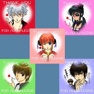 こんばんは、肩凝子です。いつも暖かな拍手コメントありがとうございます♪お返事は出来ませんが、一つ一つ、有難く読ませて頂いております。ニヤついちゃうような嬉しいコメントばかりなので、毎日リアルに踊り出しそうになるのを抑えるのに必死です。まったく、褒め殺しにも程がありますよ皆様。特に最近、男性の閲覧者様が増えているようで、老若男女全ての銀魂ファンの方に楽しんで頂ける絵を描く」ことが目標のわたくしとしては、まさに感無量。ありがたやありがたや~(*T人T)でございます!皆様のご声援にお応えできるよう、更に精進いたしますのでこれからもご贔屓にして頂ければ幸いですm(_ _)mさて、WEB拍手を送って下さった方へのお礼の絵なんですが、やっと全て第2弾の分へと入れ替えられましたー(´▽`)と言う訳で、過去の分(第1弾)の絵を晒してみます。ご覧の通り、第1弾のテーマは「投げキッス」でございました。因みに、第2弾のテーマは、「イイお顔・キメ顔」です。 ←宜しかったらチェックしてみて下さいね☆
