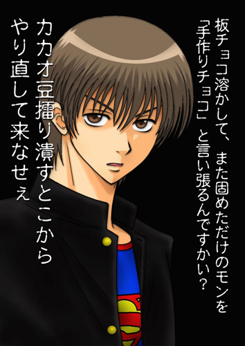 ハッピーバレンタインでございます。折角のバレンタインですから、ドSでブラックなイラストだけと言うのもアレなので、フォローの意味で、ツンデレな神楽ちゃんのイラストを描いてみました。↑釘宮ボイスでの脳内読み上げ推奨。神楽ちゃん、そんな大きくてしかもハート型のチョコ、本当にそれ、義理?( ̄m ̄*)…チョコを渡されてるお相手は、皆様のご想像にお任せします☆←宜しければ、ポチっとお願いします。