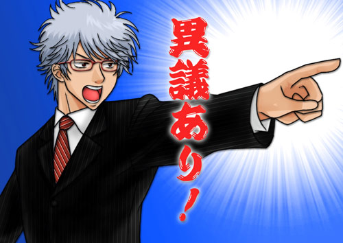 やっぱり、弁護士と言えば、このポーズですよね。(とか言って、ゲームやったこと無いんですけども。すみません。)スーツは、思いっきり自分の趣味です。ピンストライプ萌え。メガネのフレームの色は、放映見て、急遽修正しました(^^;アニメのカラーコーディネートは、なかなか斬新でございましたね。まあ、何でも似合っちゃう銀さんだからこそ着こなせるのかも知れませんが…。それにしても、今日は銀さんのアップの作画が美しくて久しぶりにドキドキしてしまいました。マダオもなんだか渋くて、随分とカッコよかったなあ。よもやマダオにときめくとは思いもしませんでしたよ。しかも因りによって、このマダオバスター回に(笑)正直、坂田弁護士の出番多い来週こそ、鶴田女史か佐藤女史の作監でお願いしたかったなー >(-。-)ボソッ←宜しければ、ポチっとお願いします。