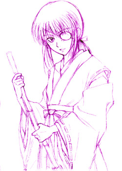 桜上 雪さんから、「だいたい5分でバトン!」が回って参りました☆・・・アタリ取るな?資料見るな?上等ダヨ!そんなん、いつものこったい。(自慢になりませんよ。)と言う訳で、↓↓↓よりスタートゥッハァ~(@セクシーコマンドー)■だいたい5分でバトン■ 指定 : 銀魂**ルール**・指定された作品で指定されたお題の絵をだいたい5分で描きましょう。 それ以上の時間をかけてはいけません。・サイズは自由。でも大きすぎない程度で。・アタリ等はとらないですべて1発描きで描きましょう。・「お題4」はそのシーンを思い出して描いてみましょう。 資料を見るのは極力控えてください。・だいたい5分を経過したら、途中でも描くのをやめてください。・回された絵師様は是非挑戦してみてください。**お題その1**・指定作品の中で一番好きなキャラをだいたい5分で描きましょう。これはもう、銀さんで決まりでんがな。…いつもの下描きとあんまり変わりありません( ̄▽ ̄;)バストアップ描き終わって、ふとタイマー見たら30秒ほど余ってたので思わず「5分」の意味で手を付け足してみたり。ホント筆が速いのだけが取り柄です。もっと丁寧に描けよ。**お題その2**・そのキャラに貴方の好みでコスプレさせてだいたい5分で描きましょう。えーと、若い頃でも良いんですよね?と言う訳で、白夜叉時代の銀さんに学ランコスプレで。描き終わってから思いましたが、銀さんは、制服のボタンをきっちり閉めるタイプじゃないですよね…(´Д`;)**お題その3**・指定作品内で気になる脇役キャラをだいたい5分で描きましょう。 何人でもOKです。何人でも、ってアンタ…。さすがに5分で100人とか描けないだろ常識的に考えて。とっつぁん。そりゃもうHNのネタにしちゃうくらいですから。脇キャラの中では、自分的に殿堂入りしてます。**お題その4**・その作品の中で一番印象に残ってるシーンをだいたい5分で描きましょう。 それとなくこんな雰囲気だったかも、的な感じで構いません。それでは、私が銀さんに嵌る切欠になった、アニメのシーンをば。紅桜編、似蔵との戦闘シーンのひとコマ、紅桜の上に乗って似蔵に剣を突き刺す直前のシーン。この表情はゾクゾクしましたわぁ~。これは、我ながらかなり上手く描けたんじゃないかと…!(汚いですけど)アホみたいに巻き戻して何回も見ましたから、このシーンは、がっつりインプットされちゃってます(^^;**お題その5**・指定作品の中で描いたことのないキャラをだいたい5分で描きましょう。 そのキャラっぽい雰囲気で描いてみてください。女の子が描きたいな。描いてない女子キャラって誰だっけ?ということで、アナコンダ …じゃない、アナコンビ。さすがに2人は結構キツイですね。マイクのあたりでタイムアップ。(剣玉じゃないのよ orz)つうか、花野アナはまあ良いとして、結野アナが別人な件。それこそ、どこの100%だ?的な感じに…。今度、ちゃんと資料見てリベンジしたいです。----お疲れさまでした。このバトンを終えて感想はございますか?キッチンタイマー使って5分カウントしながら描いたんですが(すみません主婦臭くて)普段の下描きとかけてる時間はあまり変わらない筈なのに、ものっそい緊張感がありました。ああ、妙な動悸が。ゼイゼイ。でも、その緊張感もまた、イイ刺激と言うか、スリルがあって楽しかったです!ブログでバトンと言うのは初体験でしたが、かなり楽しませて頂きました~!桜上 雪さん、ありがとうございました(*^▽^*)**では最後にこのバトンを回す絵師様をたいだい5人~10人くらい指定してください。**※指定する作品名も忘れずに。そんなに渡せる絵師様の知り合い居ねぇ…Σ(゚д゚lll)・ 【十六夜 】さん ・ 維水さん指定:銀魂 で、如何でしょうか?無理にとは申しませんが、お時間あったら是非やってみて下さいませ♪←宜しければ、ポチっとお願いします。