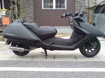 僕が買ったのは2004年2月から1年間しか販売されてないタイプXXです。色はマットアクシスグレイメタリックバイクに乗るのは21歳のとき以来10年ぶりで30歳にしてバイクっちゅうもんを買って大人になったにもかかわらずどんな風にカスタムしていこうかな~~ってワクワクしてますバイクは車よりも部品が安いから僕みたいにお小遣い制の旦那さんにはちょうど良いのかもね(><)カスタムはメッキがあんまり好きじゃないんでメッキを使わずに車体色に合わせてつや消しブラックを追求していこうかな~って思ってるんやよね財布と相談しながらやから中々進まないと思うけどちょっとずつ、ちょっとずつ自分色に仕上げていこうっと。まぁ、自己満足だねってことでフュージョン タイプXXの諸元表を載せてみました。主要諸元通称名フュージョン・Type X/フュージョン・Type XX車名・型式ホンダ・BA-MF02全長×全幅×全高(m)2.265×0.745×1.115軸距(m)1.625最低地上高(m)0.145シート高(m)0.665車両重量(kg)170乾燥重量(kg)158乗車定員(人)2燃料消費率(km/L)41.0(60km/h 定地走行テスト値)最小回転半径(m)2.9エンジン型式MF01E(水冷4ストロークOHC単気筒)総排気量(cm3)244内径×行程(mm)72.0×60.0圧縮比10.0最高出力(kW[PS]/rpm)14[19]/7,500最大トルク(N・m[kg・m]/rpm)21[2.1]/5,000始動方式セルフ式キャブレター形式VE30点火装置形式CDI式バッテリー点火燃料タンク容量(L)12潤滑方式圧送飛沫併用式クラッチ形式乾式多板シュー式変速機形式無段変速式(Vマチック)変速比1 速2.10~0.88キャスター(度)/トレール(mm)28° 00´/90タイヤサイズ前110/100-12 67J後120/90-10 66Jブレーキ形式前油圧式ディスク後機械式リーディングトレーリング懸架方式前ボトムリンク式後ユニット・スイング式フレーム形式アンダーボーン