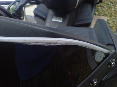 またまたバイクいじりです。今日は少し時間が取れたので色々とやりました。その中からまずは『スクリーンのモール交換』実はモールが劣化でひび割れちゃって無残なことになってたので交換しました。どこに行ってもメッキモールしか売ってなくて困ってたんですけどカインズでやっと見付けました!!ちょっと形が違うんでどうかな~~って感じですけど。遠めではこんな感じで良い感じ~~♪でも近めで見るとサイズが合ってないのでモールが浮いてるし透明すぎてノコギリでカットしたときの雑な切り口が丸見えに・・・・。まぁ、とりあえずこのままでおかしくなったらまた考えよう~~~