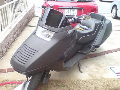 フュージョンみたいなビックスクーターのカスタムといえば『メッキ』でも~~~~~~僕はメッキカスタムがあまり好きじゃない・・・・。コテコテな感じがだめなんです。。どんなんが好きかというとスマートな感じが良いんだよね~~スマートなスポーツチューンが好きなんです。見た目は普通やけど脱ぐとすごいんですみたいなただスポーツチューンはお金がかかって僕のお小遣いでは無理やからスポーツチューンは取り合えず置いといて『スマート』な見た目を目指しバイクの色の艶消しブラックに合わせて黒色のパーツで揃えていこうと決定名付けて『黒染め』そんな感じで黒染め第1弾はフロントバイザーの下にあるミラー取付穴隠しをアルミ削り出し部品から黒ネジに替えました!!!!!! ⇒ ただ黒ネジが売ってなくてしょうがなくステンレスネジにスプレーで塗装したので100%剥げちゃうでしょーーーーこれは今後何かでネジを隠すか黒ネジを見つけたら交換するとして今のところなんとか黒染め成功