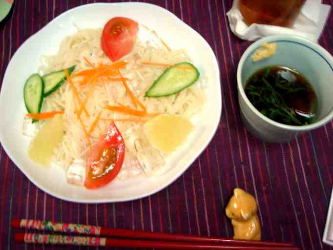 冷や麦が昼で、夜はサラダうどん
