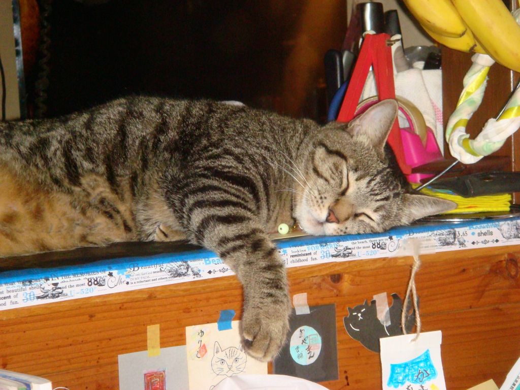 なんと長いタオル手ぬぐいで、デザインが猫とビールだ(^o^);