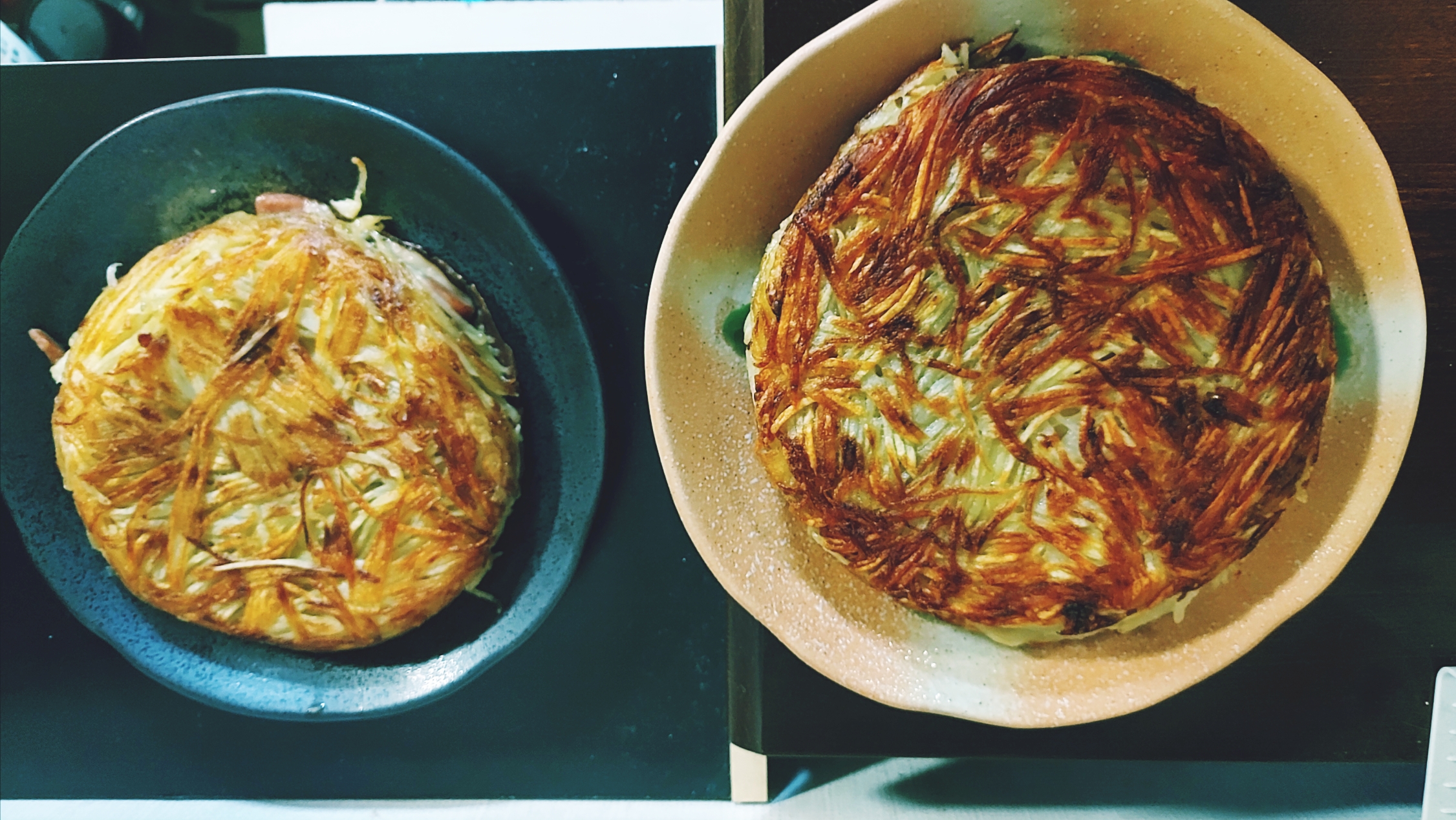 今年は本日が実家へ年始挨拶となり一人暮らし88歳の父には栄養のあるものをいただい食べさせよう!と夜遅くから仕込みを始めた。大好きな志麻さんレシピ今回はじゃがいものガレットhttps://youtu.be/SCZtZ_3yl4g?si=1DchNWR2lsRyta-a私はほぼ目分量ですってところが好き。ひたすらじゃがいもの千切りを6個分。ピーラー型スライサーが大活躍した。あとは載せて焼くだけって楽。味付けもシンプルなのに見映えもする。「お正月にお餅を喉に詰まらせておばあちゃんが亡くなったんだよね~」って話をママ友から聞いてから年寄りのお餅は怖くなったのでお雑煮は差し入れしないことにした。かわりに御赤飯の準備。御赤飯の小豆が好きじゃないって末娘のためにお米の量を増やした。次に千切りピーラーで柚子入の紅白なますを作る。黙々と千切りする。その後はギュッと絞る、絞る、絞るココがコツ。リンゴ酢も入れて柚子絞り汁も入れてアレンジ。唐揚げも下味付けた。何年も唐揚げとか揚げてないよね。うまく作れるのだろうか?あとは妹にピザのオーダーを頼み終わり。義実家はお節を用意しない家庭なので最近はスーパーのお惣菜盛合せやお寿司。休みでもバタバタしててゆっくり一緒にいられないね。甘えん坊なのにこの頃は拗ねてた。連日だと私も子どもも飽きるし好きじゃないから箸が進まない。手作りは気が向いたから。そうじゃなければ魚屋で何かしら買う予定だった。またはピザパーティーでも良いよね。(笑)さて唐揚げ揚げよう。