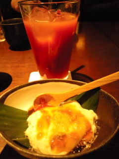 まずは絶品、ゴマ豆腐!。もっちもちで毎回の楽しみ。乾杯は私の定番カシスオレンジ♪