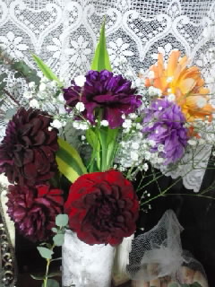 花いっぱいの出窓はカーテンは開けたままにしておこう。